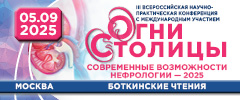 5 сентября, 2025. III Всероссийская научно-практическая конференция с международным участием «ОГНИ СТОЛИЦЫ. СОВРЕМЕННЫЕ ВОЗМОЖНОСТИ НЕФРОЛОГИИ — 2025»