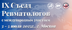 3 июля, 2025 - 5 июля, 2025. IX Съезд ревматологов с международным участие.