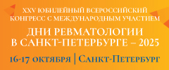 16 октября, 2025 - 17 октября, 2025. XXV Юбилейном Всероссийском конгрессе с международным участием «Дни ревматологии в Санкт-Петербурге – 2025»