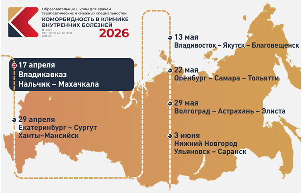 17 апреля, 2026. Образовательная школа для врачей терапевтических и смежных специальностей «Коморбидность в клинике внутренних болезней. Опыт региональных школ». Владикавказ – Нальчик – Махачкала
