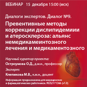 09 декабря 2020, 15:45 Диалоги экспертов. Диалог №9. «Превентивные методы коррекции дислипидемиии и атеросклероза: альянс немедикамеинтозного лечения и медикаментозного»