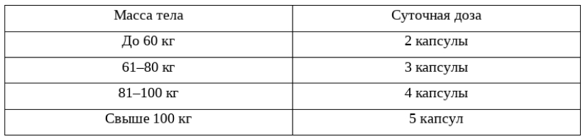 Суточная доза составляет 10–15 мг/кг в 2–3 приема. Длительность терапии составляет 6–12 месяцев и более.