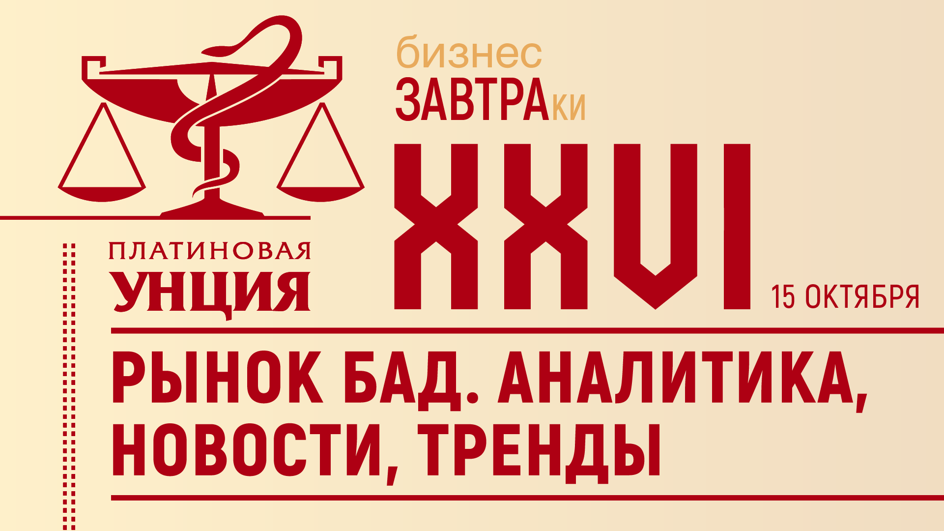14 октября, 2025. 15 октября состоится первый бизнес-завтраку «РЫНОК БАД. АНАЛИТИКА, НОВОСТИ, ТРЕНДЫ»