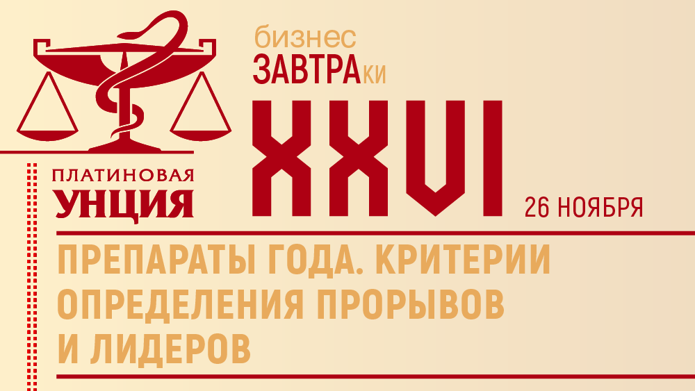 26 ноября в рамках деловой программы 26-го сезона «Платиновой Унции» состоится четвертый бизнес завтрак «Препараты года. Критерии определения прорывов и лидеров».