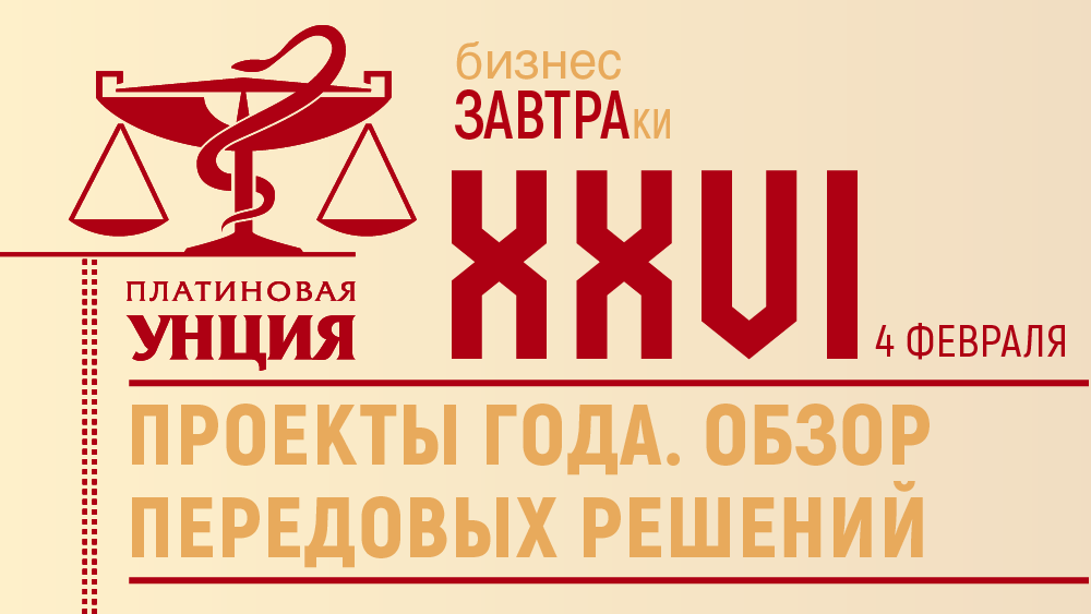 4 февраля в 11:00 (Мск) состоится бизнес-завтрак «Проекты года. Обзор передовых решений», подключайтесь к трансляции. Мероприятие завершает деловую программу 26 сезона «Платиновой Унции».