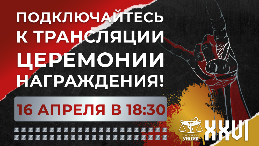 15 апреля, 2026. Подключайтесь к трансляции церемонии награждения 26 сезона «Платиновой Унции»!