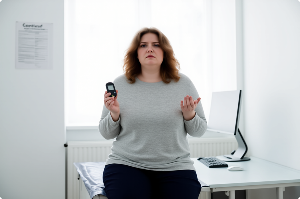 Пациентка рассказала, что 5 лет назад у нее диагностирован сахарный диабет 2 типа. Пару лет назад отметила повышение артериального давления, кардиолог выписал антигипертензивный препарат каптоприл, однако в связи с ненормированным графиком на работе (экскурсовод) не принимала препараты вовремя. Сахар в крови измеряла периодически (2-3 раза в день), но без какого-либо графика. Артериальное давление измеряет только при плохом самочувствии. Принимает пероральную сахароснижающую терапию (метформин), но не выдерживает четкую схему приема, иногда пропускает прием таблеток. Курит по 15 сигарет в день. Диету не соблюдает в связи с особенностями профессии.